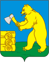 "В лазоревом (синем, голубом) поле на зелёной земле золотой с черным носом восстающий медведь, держащий передними лапами серебряный топор на золотом топорище, и перед ним на той же земле - золотой выходящий слева угол незавершенного сруба".