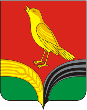 "В червлёном (красном) поле золотой поющий соловей; в оконечности оба угла щита выпукло выделены зеленью и ограничены выходящими снизу и вписанными фигурами: справа золотой головкой колоса, слева – чёрным потоком".
