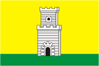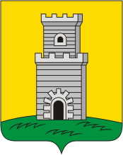 "В золотом поле на зеленой земле серебряная башня о двух зубча¬тых ярусах с черной аркой ворот и таким же окном в верхнем ярусе".