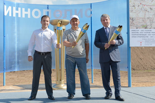 Putting into operation distribution gas pipeline on the territory of Innopolis innovation centre. Tatarstan President Rustam Minnikhanov takes part. 21.08.2013