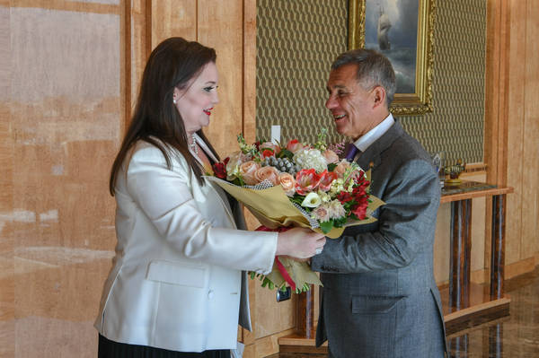 Meeting of Tatarstan President Rustam Minnikhanov with people's artist of the Repulic of Tatarstan Albina Shagimuratova 12.09.2017