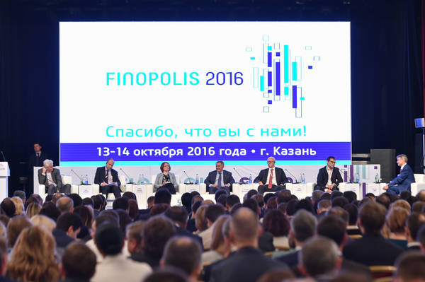 Opening and plenary discussion of the forum of innovative financial technologies FINOPOLIS 2016. Chairman of the Central Bank of Russia Elvira Nabiullina, Board Chairman of Sberbank of Russia German Gref and Tatarstan President Rustam Minnikhanov are taking part 13.10.2016