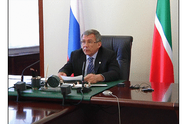 Event: Teleconference "on measures on organization and holding seasonal field works". Held by Chairman of Russian Government Dmitry Medvedev. Tatarstan President Rustam Minnikhanov takes part. 25.03.2015