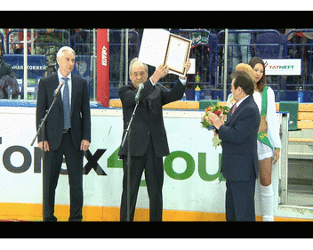 Event: Tatarsan State Counsellor Mintimer Shaimiev hands over Letter of commendation of Tatarstan President to chief coach of Ak Bars hockey team Zinetula Bilyaletdinov 13.03.2015