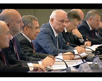 Event: Presidium session of Russian State Council "On improving network of motor roads for the purpose of integrated development of the territory of Russian Federation". Held by Russian President Vladimir Putin. Tatarstan President Rustam Minnikhanov takes part. 08.10.2014