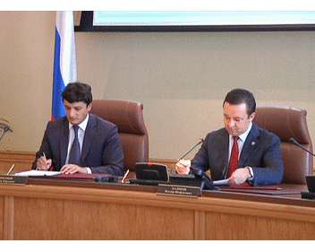 Event: Signing agreement on allocating federal funds for implementation of regional programme in the sphere of energy safety and efficiency for 2013. Tatarstan Prime Minister Ildar Khalikov and Deputy Minister of Energy A.Yu. Inyutsyn take part. 05.09.2013