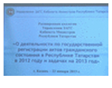 Event: extended board session of the Civil registry office under the RT Cabinet concerning activity on state registration of acts of civil status in RT in 2012 and setting tasks for 2013". Tatarstan's PM Ildar Kalikov takes part in the event. 22.01.2013