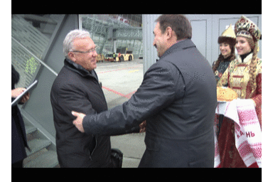Event: Tatarstan Prime Minister Aleksey Pesoshin is meeting Governor of the Krasnoyarsk Territory Alexander Uss at the Kazan International Airport, who has arrived in Kazan. 09.11.2018