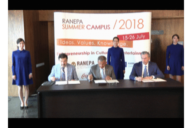 Event: Tatarstan President Rustam Minnikhanov is signing an agreement between Government of the republic, the Russian Presidential Academy of National Economy and Public Administration (RANEPA) and Gazprombank on educational, scientific and technical cooperation. 16.07.2018