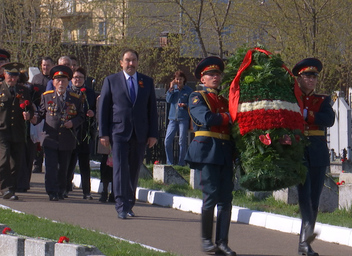 Event: Solemn ceremony of laying flowers at war graves and obelisk in memory of fallen in the Great Patriotic War in 1941-1945. Tatarstan Prime Minister Aleksey Pesoshin is taking part. 09.05.2018