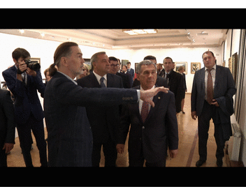 Event: Opening of the exhibition of a popular Moscow artist Nikas Safronov. Tatarstan President Rustam Minnikhanov is taking part. 20.09.2017