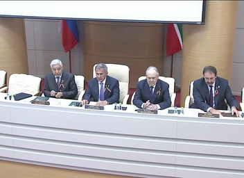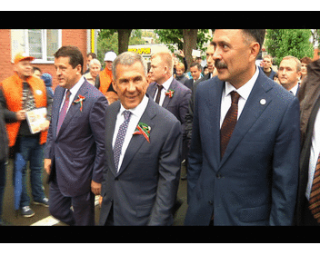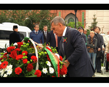 Event: Solemn ceremony of unveiling memorial plaques to Fikryat Tabeyev and Gumer Usmanov. Tatarstan President Rustam Minnikhanov is taking part. 29.08.2017