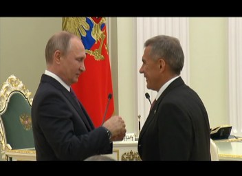 Event: President of Russia Vladimir Putin is presenting the Order of Alexander Nevsky to Tatarstan President Rustam Minnikhanov 25.05.2017