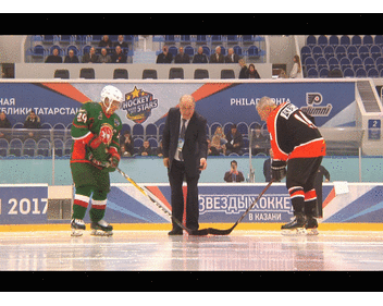 Event: Hockey match between veterans' teams "Philadelphia Flyers" and the team of the Republic of Tatarstan. Tatarstan President Rustam Minnikhanov is taking part 15.02.2017