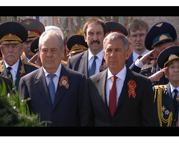 Event: Solemn ceremony of laying flowers and wreaths to the Eternal Flame of the Memorial of Glory. Tatarstan President Rustam Minnikhanov is taking part 09.05.2016