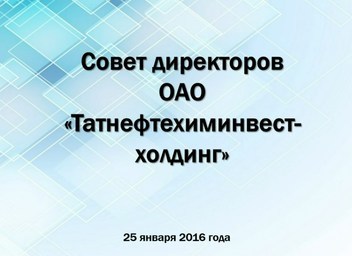 Event: Board session of OAO "Tatneftekhiminvest-holding" held by Tatarstan President Rustam Minnikhanov 25.01.2016