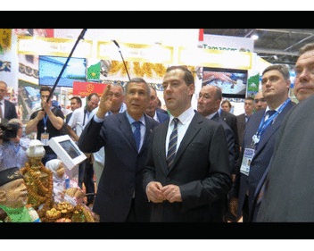Event: Visit to the 1st national food forum by officials with the participation of Chairman of Russian Government Dmitry Medvedev. Interim President of the Republic of Tatarstan Rustam Minnikhanov takes part. 05.06.2015