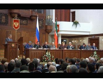 Event: Solemn meeting of deputies and public representatives, dedicated to 25th anniversary of establishing parliamentarism in contemporary history of Tatarstan Republic. Chairman of the Federation Council of the Federal Assembly Valentina Matvienko and Acting President of the Republic of Tatarstan Rustam Minnikhanov take part. 30.05.2015