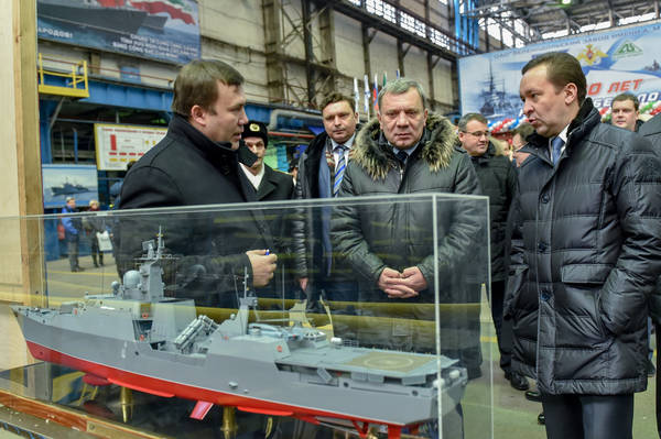 Торжественное мероприятие по случаю закладки двух кабельных судов проекта 15310 на ОАО «Зеленодольский завод им.А.М.Горького». Принимают участие заместитель Министра обороны Российской Федерации Юрий Иванович Борисов и Премьер-министр Республики Татарстан И.Ш.Халиков. Фото Марсель Бадыкшин