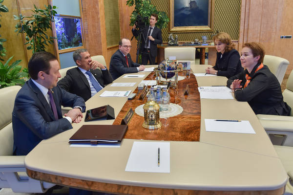 Встреча Президента Республики Татарстан Р.Н. Минниханова с заместителем министра экономического развития Российской Федерации - руководителем Федерального агентства по управлению государственным имуществом О.К. Дергуновой. Фото Марсель Бадыкшин