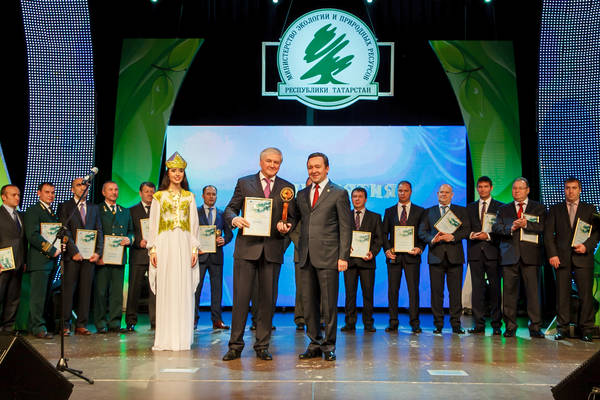 Торжественная церемония награждения победителей ежегодных республиканских конкурсов «Эколидер» и «Человек и природа». Принимают участие Министр природных ресурсов и экологии Российской Федерации Сергей Ефимович Донской, Премьер-министр Республики Татарстан И.Ш.Халиков. Фото: Михаил Фролов