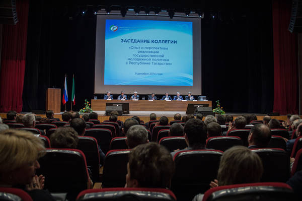 Заседание коллегии Министерства по делам молодежи и спорту Республики Татарстан «Опыт и перспективы реализации государственной молодежной политики в Республике Татарстан». Принимает участие Президент Республики Татарстан Р.Н.Минниханов. Фото Марсель Бадыкшин