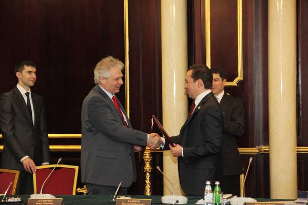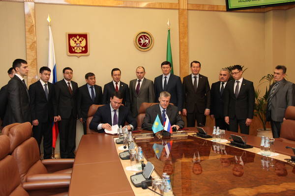 Подписание соглашения о сотрудничестве между Комитетом национальной безопасности Республики Казахстан и Федеральной службой Российской Федерации по контролю за оборотом наркотиков. Принимает участие Премьер-министр Республики Татарстан И.Ш.Халиков.: фото Михаила Козловского