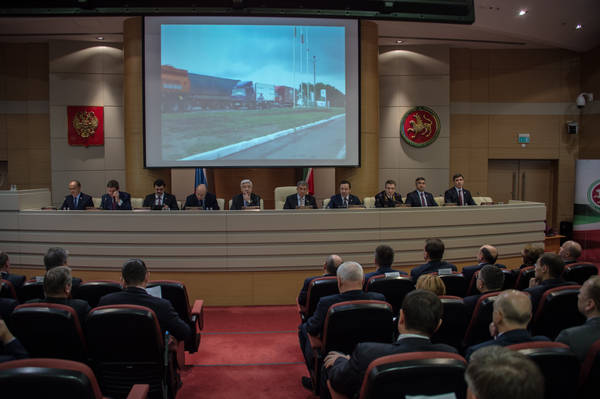 Совместное заседание Кабинета Министров Республики Татарстан и коллегии Министерства внутренних дел по Республике Татарстан по вопросу повышения безопасности дорожного движения в Республике Татарстан, сокращению дорожно-транспортных происшествий и снижению тяжести их последствий. Принимает участие Президент Республики Татарстан Р.Н.Минниханов. Фото Марсель Бадыкшин