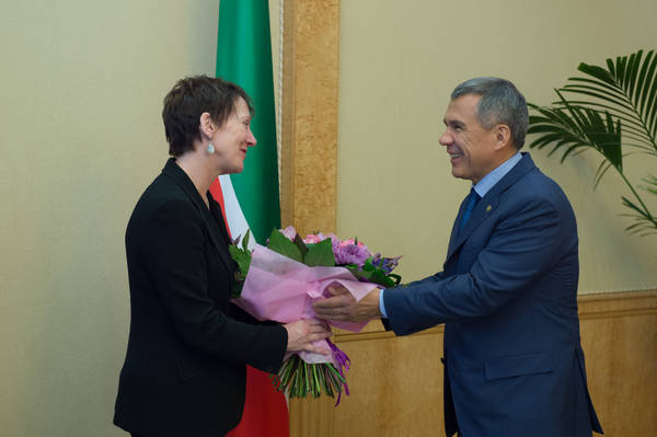 Встреча Президента Республики Татарстан Р.Н.Минниханова с Советником-посланником Посольства Великобритании и Северной Ирландии в Российской Федерации г-жой Барбарой Хабберджэм. Фото Марсель Бадыкшин