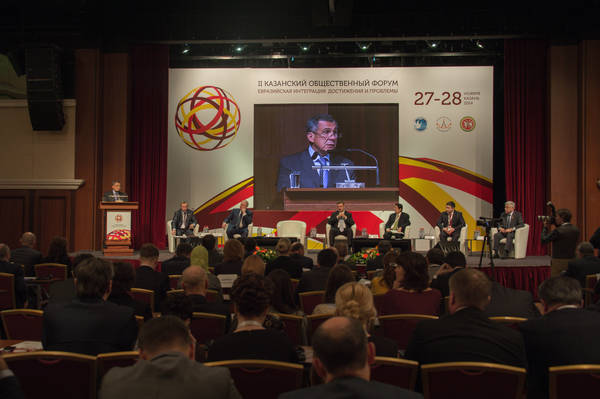 Пленарное заседание второго Казанского форума «Евразийская экономическая интеграция: достижения и проблемы». Принимает участие Президент Республики Татарстан Р.Н.Минниханов. Фото Марсель Бадыкшин
