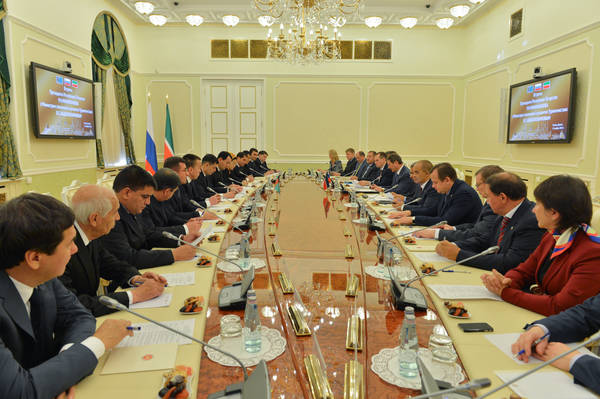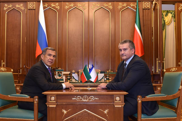 Встреча Президента Республики Татарстан Р.Н. Минниханова с Полномочным представителем Президента Российской Федерации в Крымском федеральном округе Олегом Евгеньевичем Белавенцевым и Главой Республики Крым, Председателем Совета министров Республики Крым Сергеем Валерьевичем Аксёновым. Фото Ринат Сафин