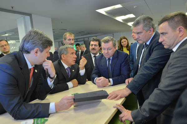 Посещение Полномочным представителем Президента РФ в Крымском федеральном округе О.Е.Белавенцевым, Главой Республики Крым С.В.Аксеновым и Президентом РТ Р.Н.Миннихановым Технопарка в сфере высоких технологий "IT-парк". Фото Марсель Бадыкшин