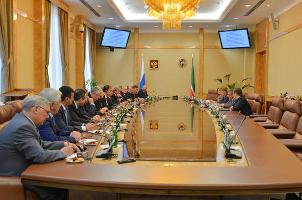 Встреча Президента Республики Татарстан Р.Н. Минниханова с ведущими представителями Ассоциации директоров центров и институтов онкологии, радиологии и рентгенологии государств-участников Содружества Независимых Государств. Фото Марсель Бадыкшин