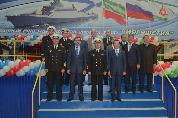 Церемония закладки капсулы в ознаменование начала строительства открытого судостроительного комплекса «Южная площадка» и закладка малого ракетного корабля «Ингушетия». Принимают участие Глава Республики Ингушетия Юнус-Бек Баматгиреевич Евкуров, Премьер-министр Республики Татарстан И.Ш.Халиков. Фото Марсель Бадыкшин
