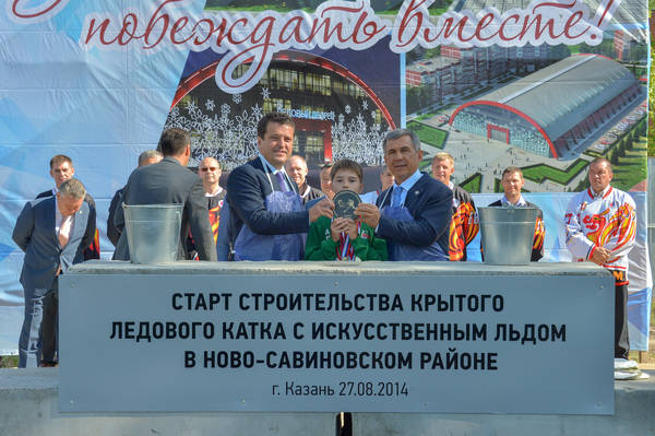 Закладка капсулы на площадке строительства Ледового Дворца в микрорайоне 26 г.Казани. Принимает участие Президент Республики Татарстан Р.Н.Минниханов. Фото Марсель Бадыкшин