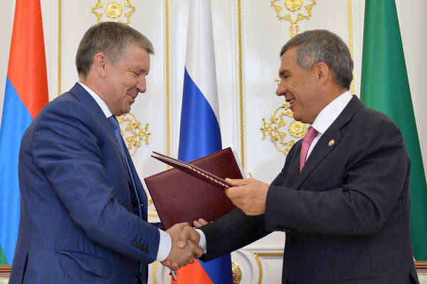 Встреча Президента Республики Татарстан Р.Н.Минниханова с делегацией Республики Карелия во главе с Главой Республики Карелия Александром Петровичем Худилайненом. Фото Ринат Сафин