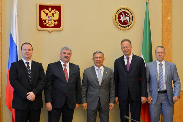 Встреча Президента Республики Татарстан Р.Н.Минниханова с председателем правления концерна Wienerberger AG г-ном Хаймо Шойхом. Фото Марсель Бадыкшин