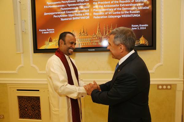 Встреча Президента Республики Татарстан Р.Н.Минниханова с Чрезвычайным и Полномочным Послом Демократической Социалистической Республики Шри-Ланка в Российской Федерации г-ном Удаянгом Виратунгом: фото Михаила Козловского