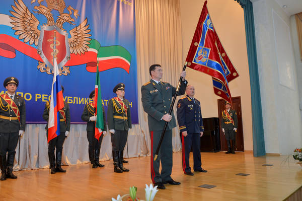 Вручение знамени Управлению Федеральной службы по контролю за наркотиками по Республике Татарстан. Принимает участие Президент Республики Татарстан Р.Н.Минниханов. Фото Марсель Бадыкшин