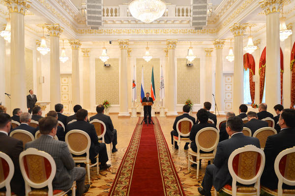 Церемония вручения государственных наград Российской Федерации и Республики Татарстан по итогам проведения XXVII Всемирной летней Универсиады 2013 года в г. Казани. Фото Марселя Бадыкшина.