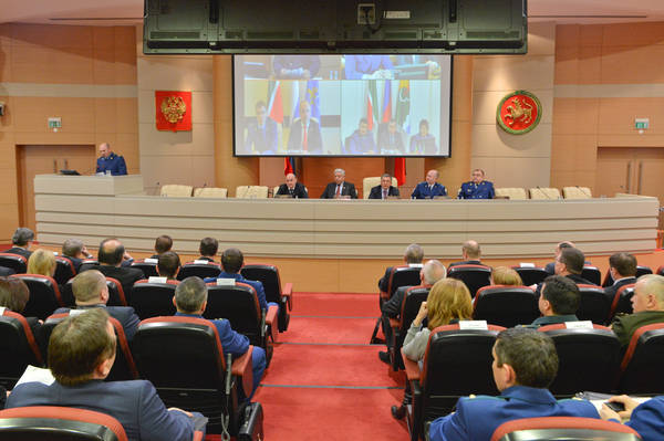 Расширенное заседание коллегии Прокуратуры Республики Татарстан в режиме видеоконференции «Об итогах работы органов Прокуратуры Республики Татарстан за 2013 год и задачах по укреплению законности и правопорядка в 2014 году». Принимает участие Президент Республики Татарстан Р.Н.Минниханов. Фото Марсель Бадыкшин