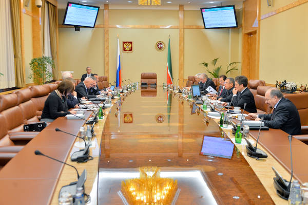 Совещание по вопросам реализации проектов ОЭЗ ТВТ «Иннополис», АНО «Университет», ОЗЗ ППТ «Алабуга», Свияжского межрегионального мультимодального логистического центра при участии заместителя министра экономического развития Российской Федерации О.Г. Савельева и Президента Республики Татарстан Р.Н. Минниханова. Фото Марсель Бадыкшин