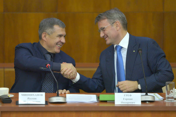 Открытие флагманского подразделения ОАО «Сбербанк России» в Республике Татарстан. Принимают участие Президент Республики Татарстан Р.Н.Минниханов, Председатель Правления ОАО «Сбербанк России» Герман Оскарович Греф. Фото Ринат Сафин