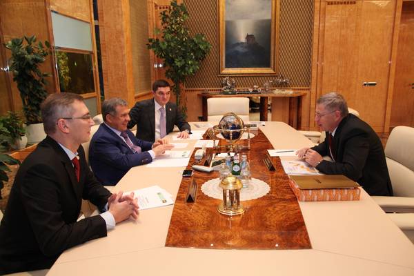 Встреча Президента Республики Татарстан Р.Н.Минниханова с президентом компании «Дельрус» Юлаем Басыровичем Магадеевым : фото Михаила Козловского