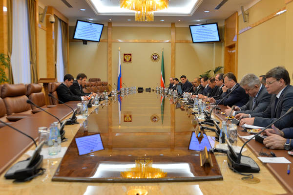 Заседание «круглого стола» с участием руководителей исполнительных комитетов муниципальных районов и городских округов Республики Татарстан. Принимает участие первый заместитель Премьер-министра Республики Татарстан Р.Ф.Муратов. Фото Марсель Бадыкшин