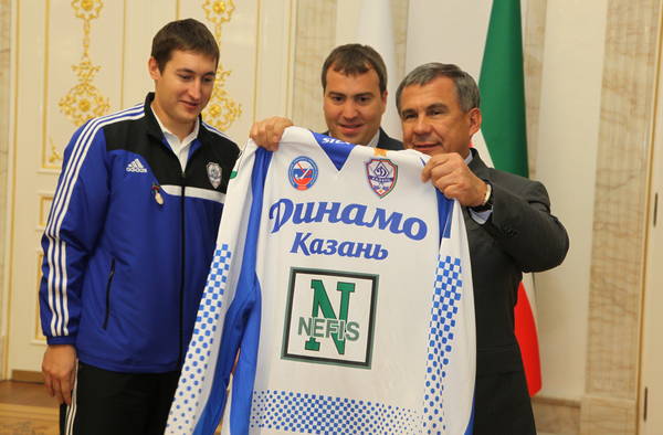Встреча Президента Республики Татарстан Р.Н. Минниханова с членами хоккейного клуба «Динамо-Казань» - обладателями Кубка России по хоккею с мячом: фото Михаила Козловского