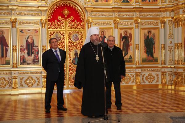 Презентация объектов острова-града Свияжск (после реставрации). Принимают участие Президент Республики Татарстан Р.Н. Минниханов, Государственный Советник Республики Татарстан, Председатель Попечительского совета Республиканского фонда возрождения памятников истории и культуры Республики Татарстан М.Ш. Шаймиев.: фото Михаила Козловского