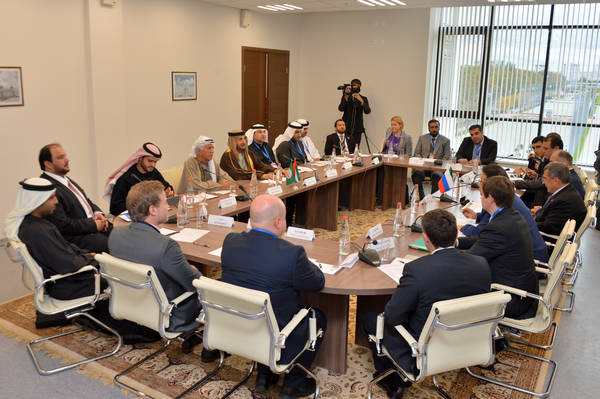 Встреча Президента Республики Татарстан Рустама Минниханова с делегацией Объединенных Арабских Эмиратов во главе с замминистра экономики ОАЭ Абдуллахом аль-Салехом в рамках форума Kazansummit'13. Фото Марсель Бадыкшин