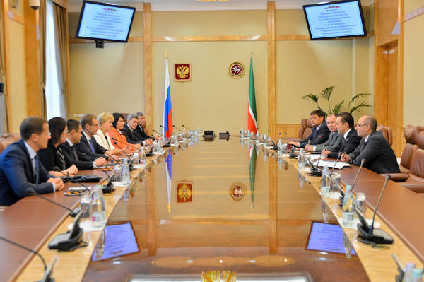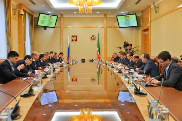 Встреча Премьер-министра Республики Татарстан И.Ш.Халикова с делегацией Республики Казахстан во главе с заместителем Акима Южно-Казахстанской области Сапарбеком Куракбаевичем Туякбаевым. Фото Марсель Бадыкшин