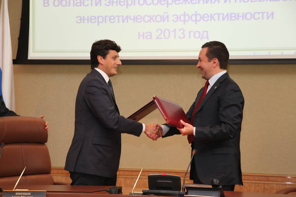 Подписание соглашения о предоставлении из федерального бюджета бюджету Республики Татарстан субсидии на реализацию региональной программы в области энергосбережения и повышения энергетической эффективности на 2013 год. Принимают участие Премьер-министр Республики Татарстан И.Ш.Халиков и заместителя Министра энергетики Российской Федерации А.Ю.Инюцин.: фото Михаила Козловского